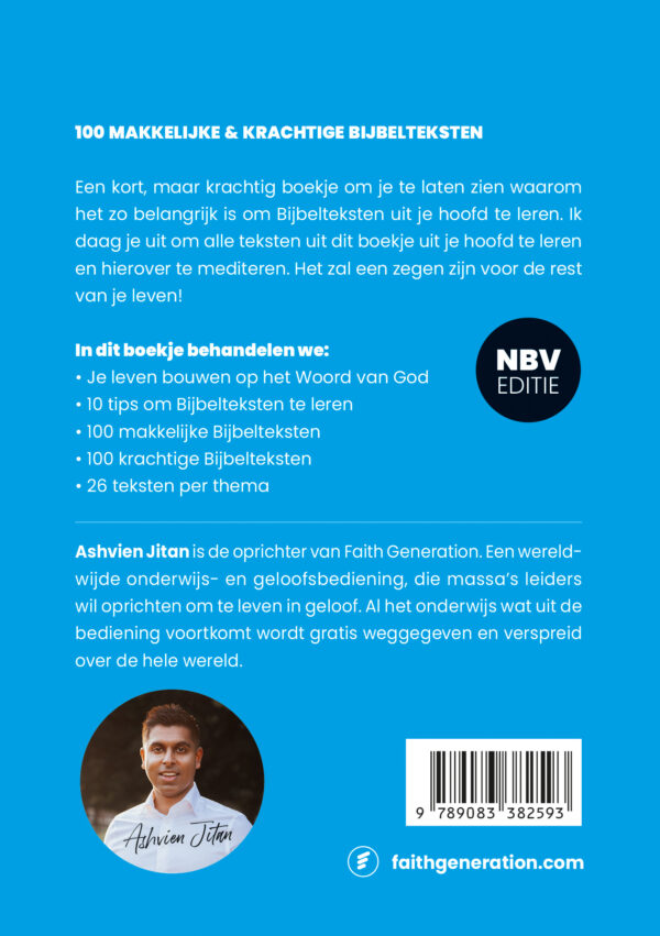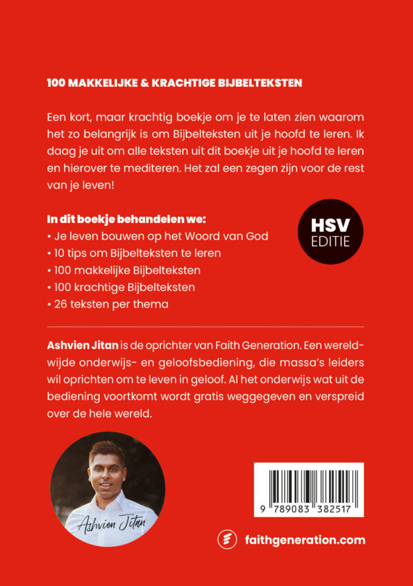 Stel je voor hoe krachtig je wordt als je in honderd dagen honderd makkelijke Bijbelteksten uit je hoofd leert! Dit boek helpt jou om deze simpele en krachtige Bijbelteksten uit je hoofd te leren. Bestel de HSV-editie of de NBV21-editie.